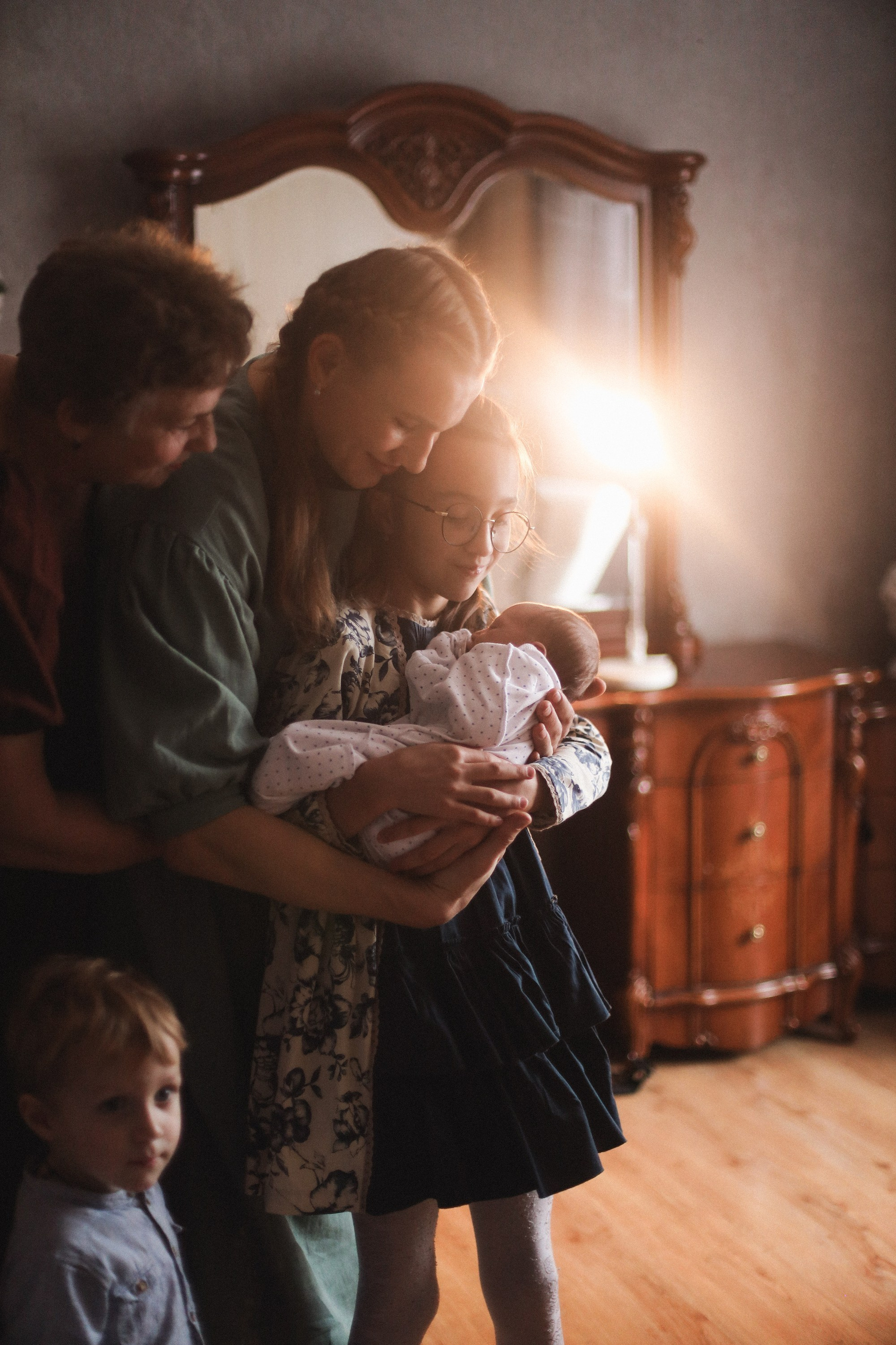 На фото малышке всего несколько дней. И с каким трепетом вся семья окружает ее.