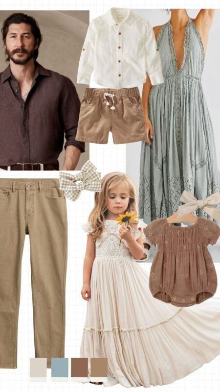 Сочетаемость: Подобранные образы должны сочетаться по стилю, фактуре ткани, цветовой гамме. Например, та же домашняя съемка: мама и дети в домашних льняных платьях, а папа — в спортивных штанах и футболке Nike. Это не сочетается, и итоговым результатом вы, скорее всего, будете недовольны.